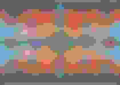 I usually start my RAP artworks by representing the journey of reconciliation. There's four pillars of RAP: respect, relationships, opportunities, and governance. I represent those pillars [in the work]. At the center is Block itself. And then there’s a path running through the artwork, representing the journey of the Reconciliation Action Plan for Block. Represented across the artwork mid top and bottom on the orange background is financial wellness and economic empowerment representing Block’s commitment to strengthening communities and fostering prosperity for all.